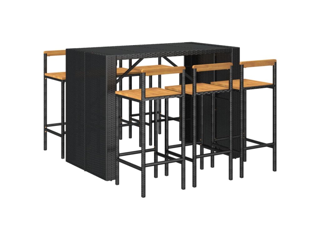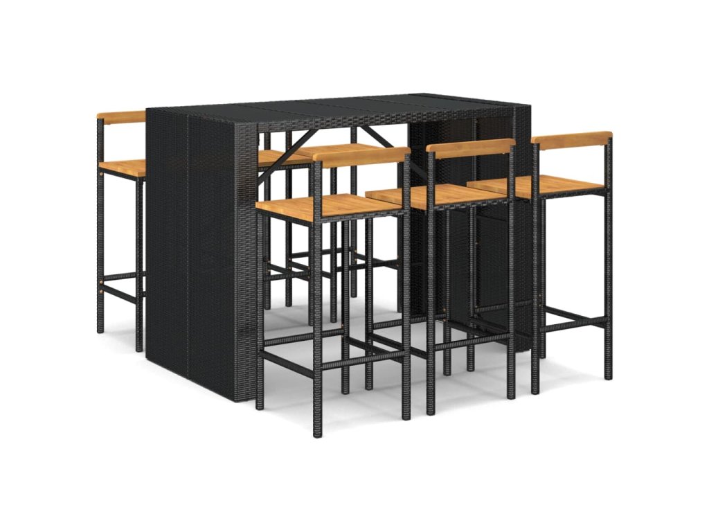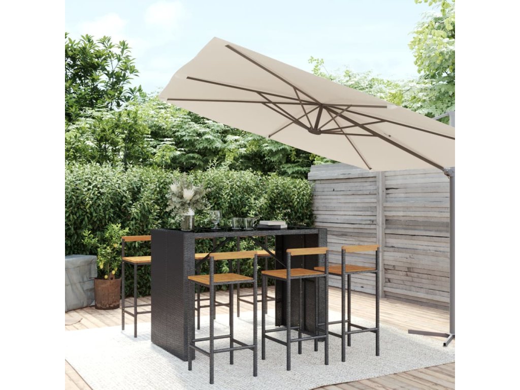 7dílný zahradní barový set černý polyratan a masivní akácie 3187702
