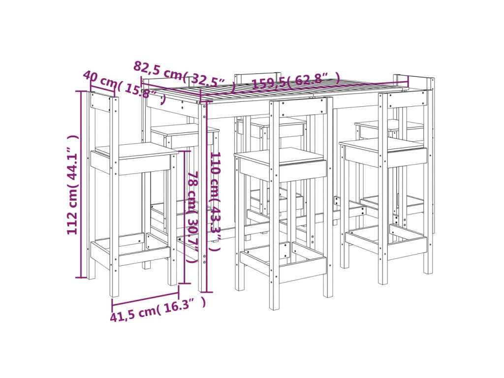 7dílný zahradní barový set masivní borové dřevo 3154760