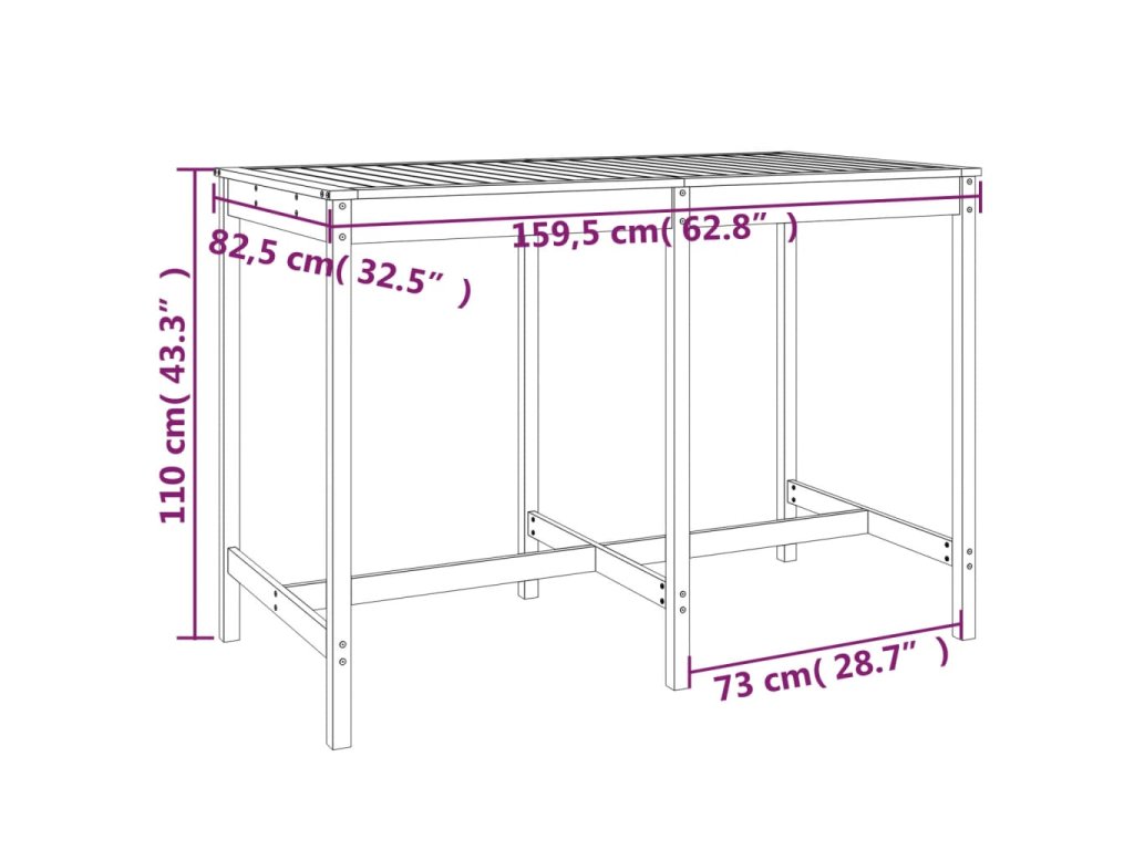 - Rozměry zahradního stolku: 159,5 x 82,5 x 110 cm (D x Š x V)