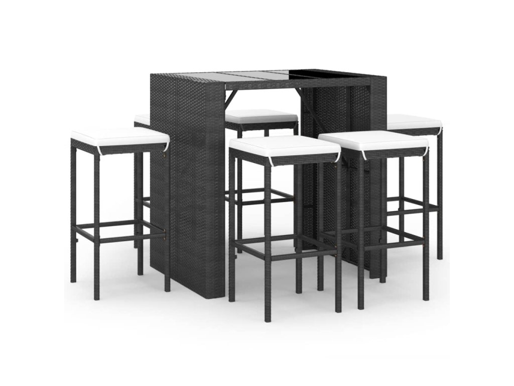 7dílný zahradní barový set s poduškami černý polyratan 3187621