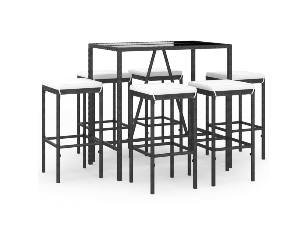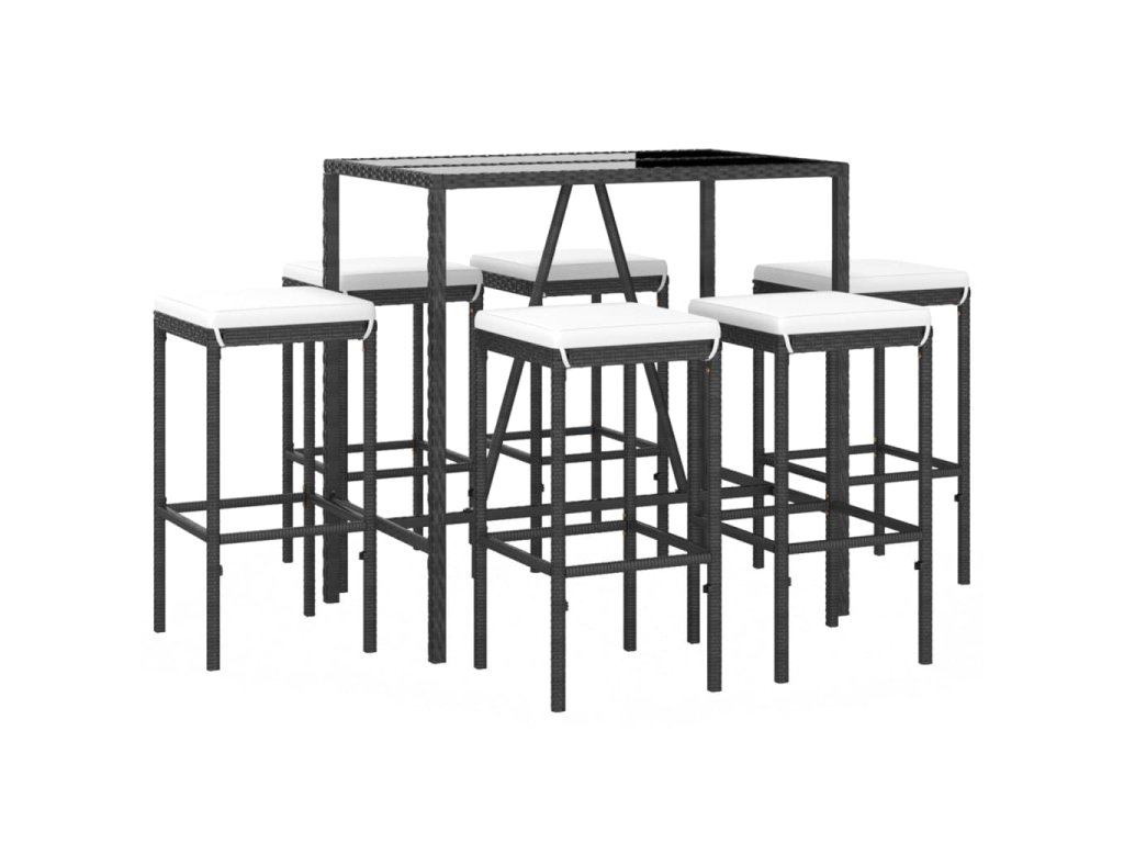7dílný zahradní barový set s poduškami černý polyratan 3187635