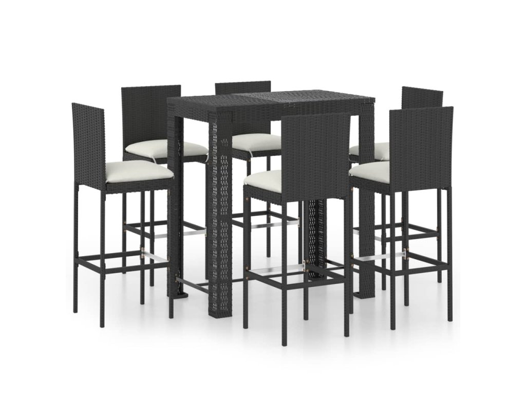 7dílný zahradní barový set s poduškami polyratan černý 3064798