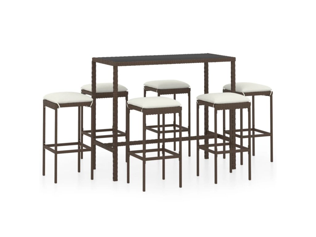 7dílný zahradní barový set s poduškami polyratan hnědý 3064822