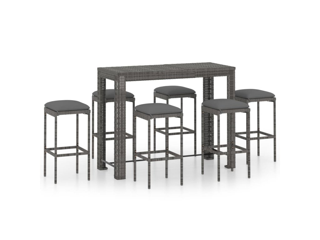7dílný zahradní barový set s poduškami polyratan šedý 3064788