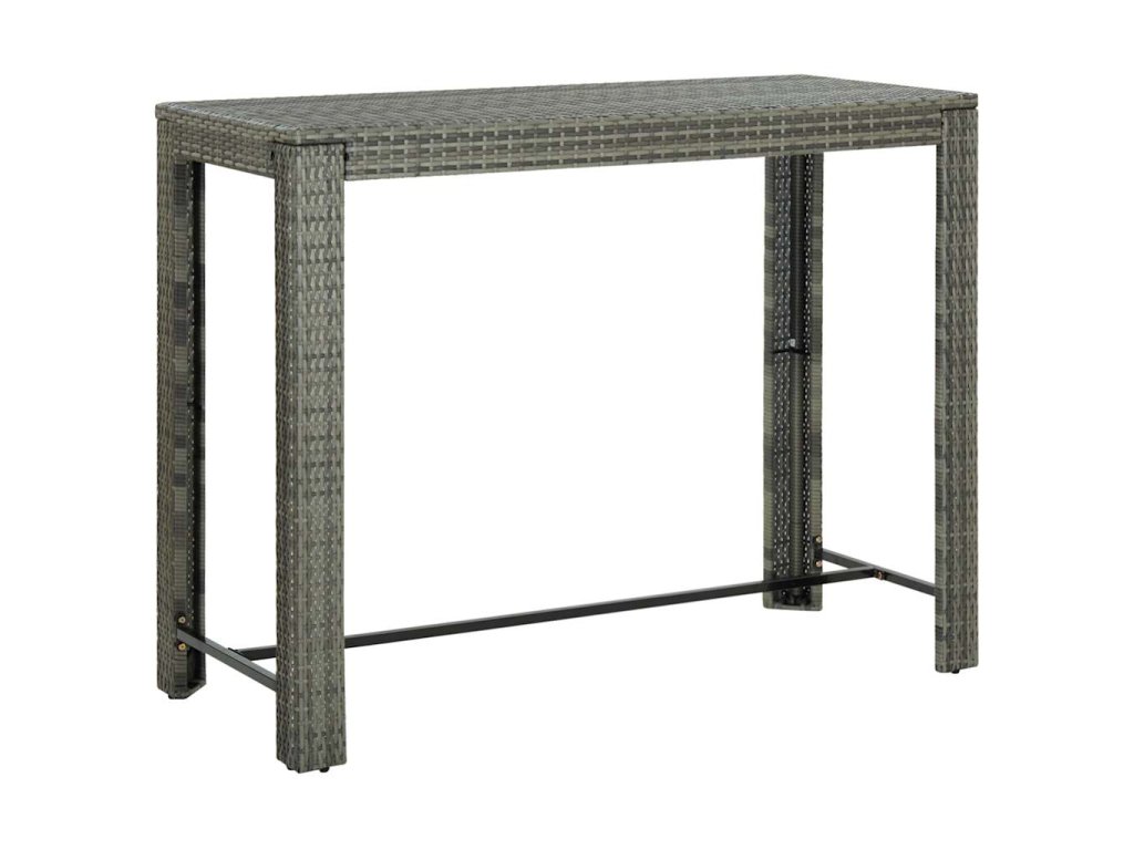Barový stůl je zpevněný ocelovým rámem s práškovým nástřikem, takže je stabilní a bytelný. Deska stolu je ideální pro servírování nápojů, jídla nebo k vystavení dekorativních předmětů. Stoličky mají pevnou ocelovou konstrukci a jsou vyrobené z klimaticky odolného PE ratanu, který je zárukou stability a umožňuje snadné přenášení. Poduška a opěrka na nohy přispívají k většímu pohodlí při sezení na stoličce. Polyesterový potah na podušky se skrytým zipem usnadňuje čištění.