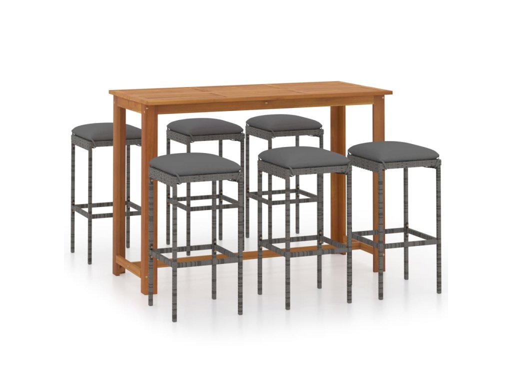 7dílný zahradní barový set s poduškami šedý 3068012