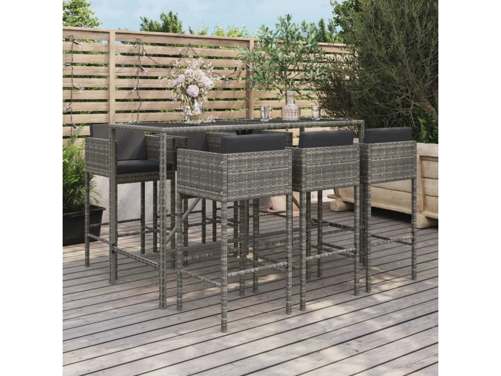 7dílný zahradní barový set s poduškami šedý polyratan 3200653
