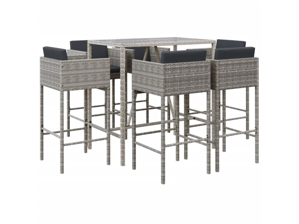 7dílný zahradní barový set s poduškami šedý polyratan 3200660