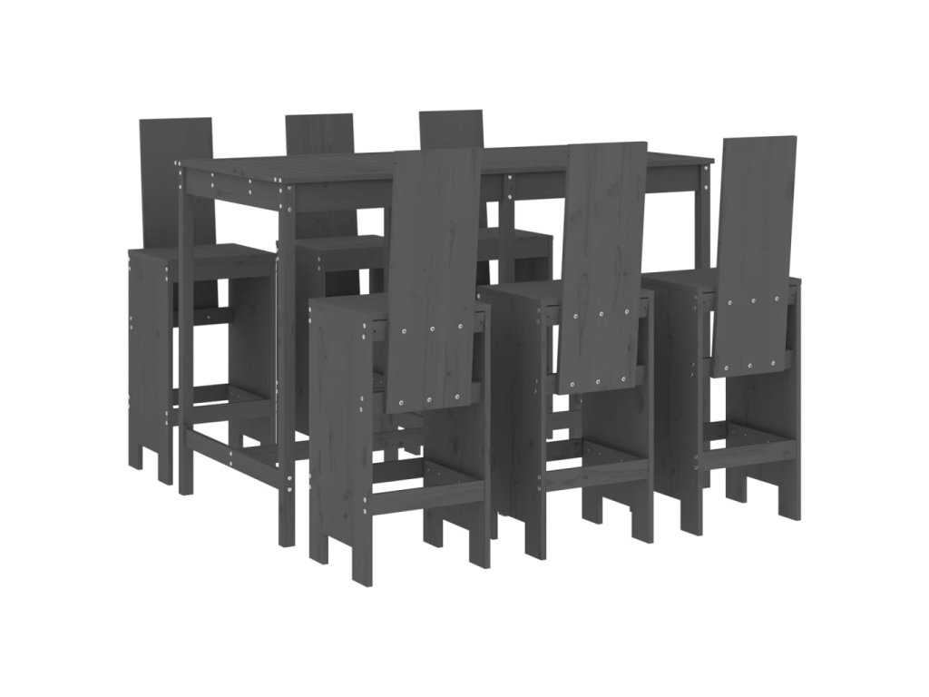 7dílný zahradní barový set šedý masivní borové dřevo 3157783