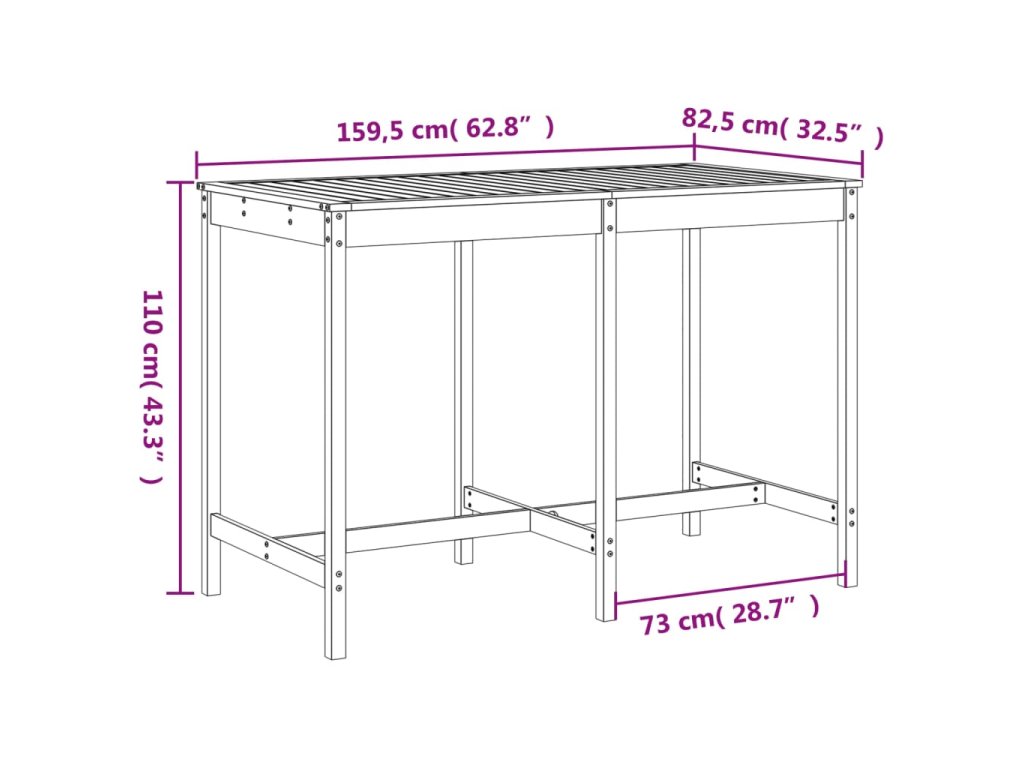 - Rozměry zahradního stolku: 159,5 x 82,5 x 110 cm (D x Š x V)