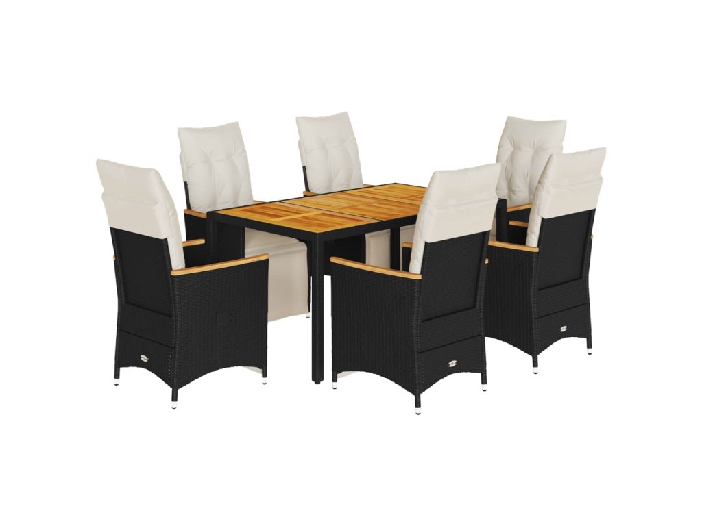 7dílný zahradní bistro set s poduškami černý polyratan 3276962