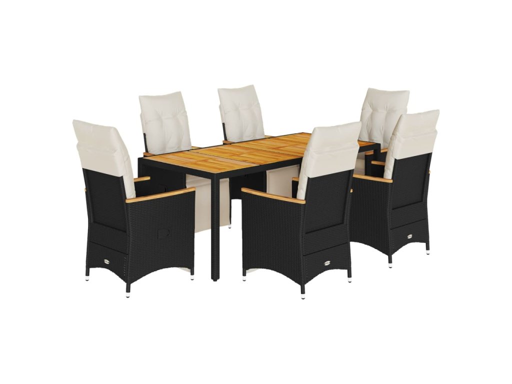 7dílný zahradní bistro set s poduškami černý polyratan 3276963