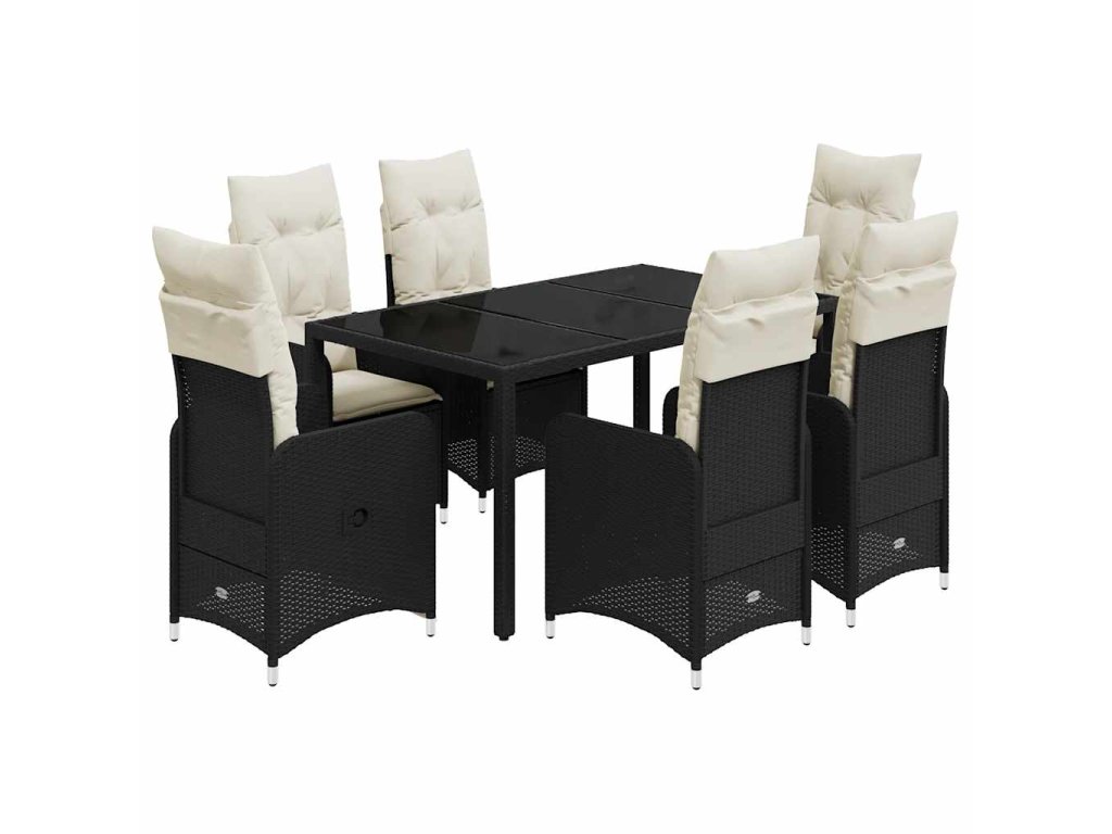 7dílný zahradní bistro set s poduškami černý polyratan 3276992