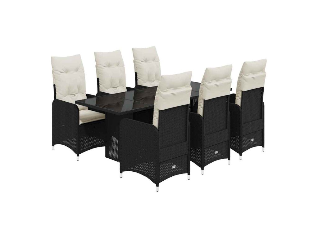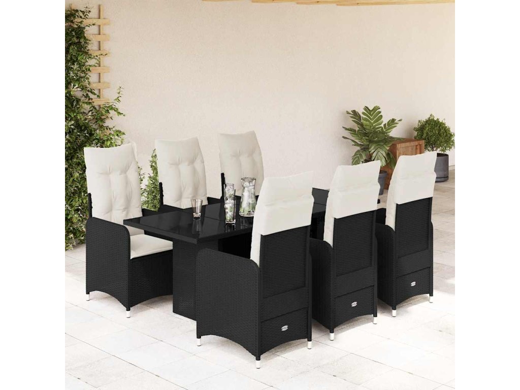 7dílný zahradní bistro set s poduškami černý polyratan 3276996