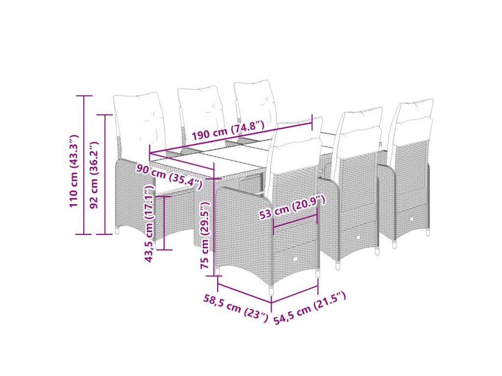 - Materiál: PE ratan, práškově lakovaná ocel, tvrzené sklo