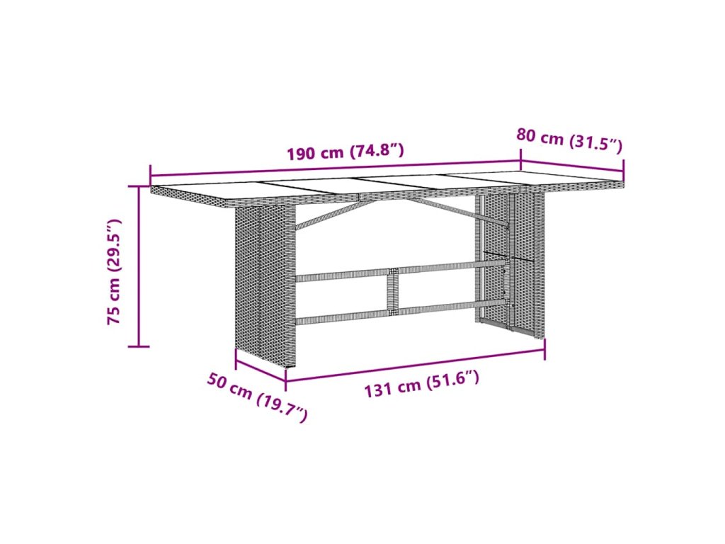 - Skleněná deska stolu: Deska venkovního stolu je zhotovena ze silného a odolného tvrzeného skla, takže ji snadno očistíte vlhkým hadříkem a zároveň do vašeho venkovního prostoru vnese nádech elegance.