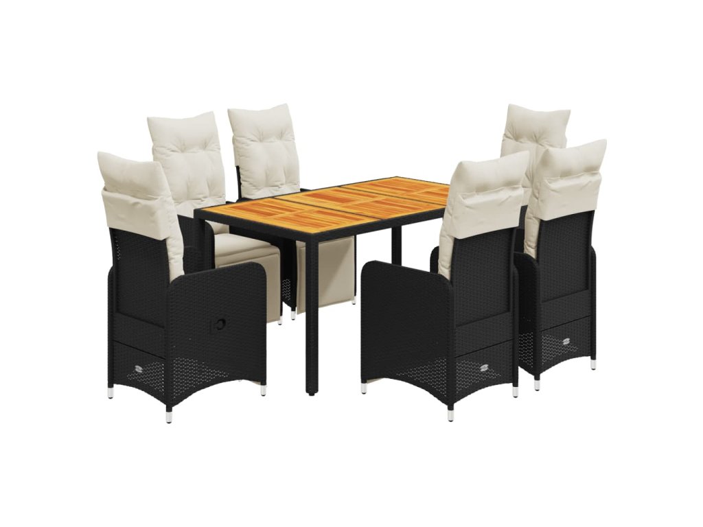 7dílný zahradní bistro set s poduškami černý polyratan 3277130