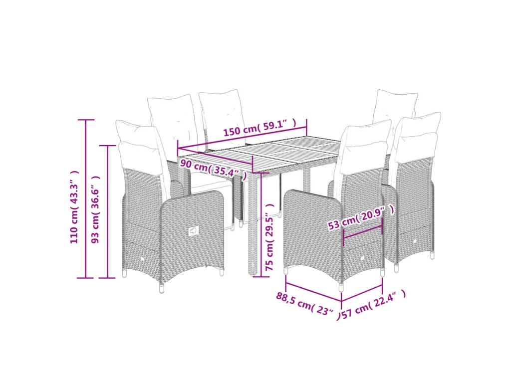 - Materiál: PE ratan, ocel, masivní akáciové dřevo s olejovou povrchovou úpravou