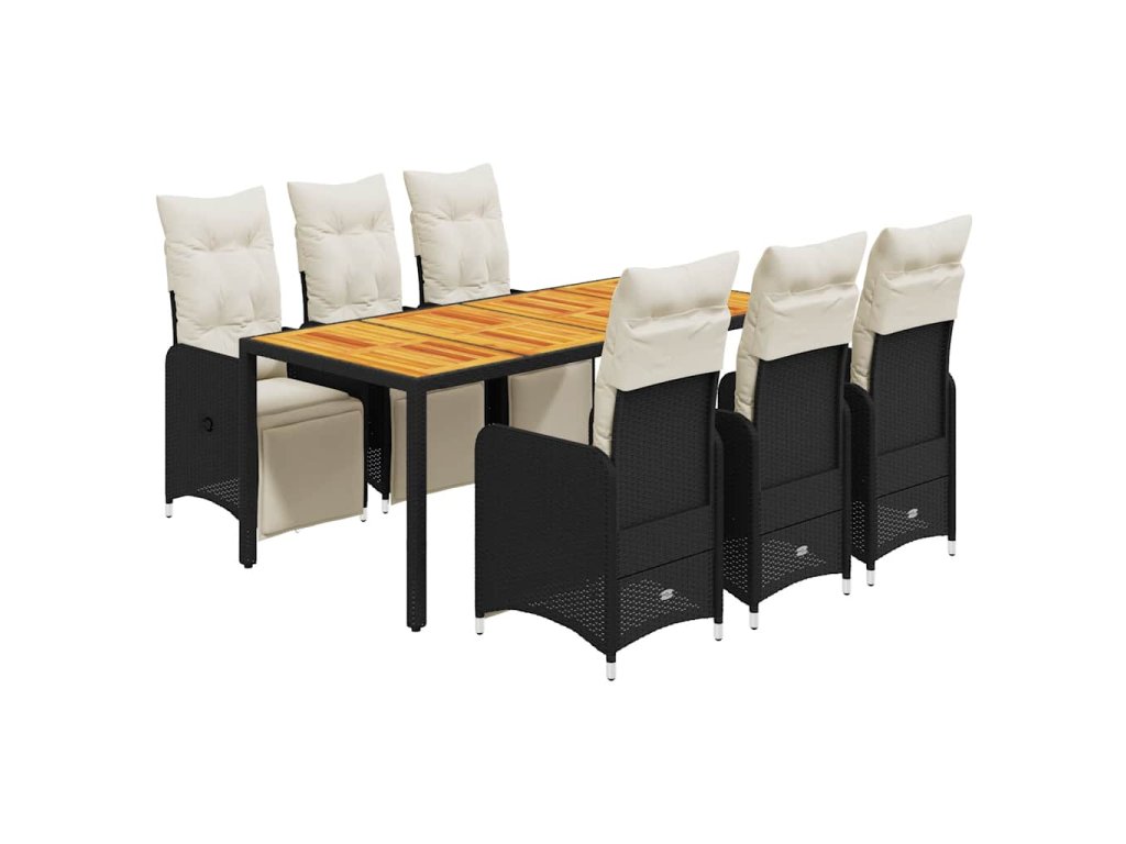 7dílný zahradní bistro set s poduškami černý polyratan 3277131
