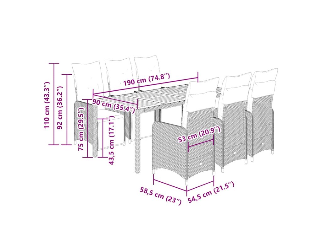 - Materiál: PE ratan, ocel, masivní akáciové dřevo s olejovou povrchovou úpravou