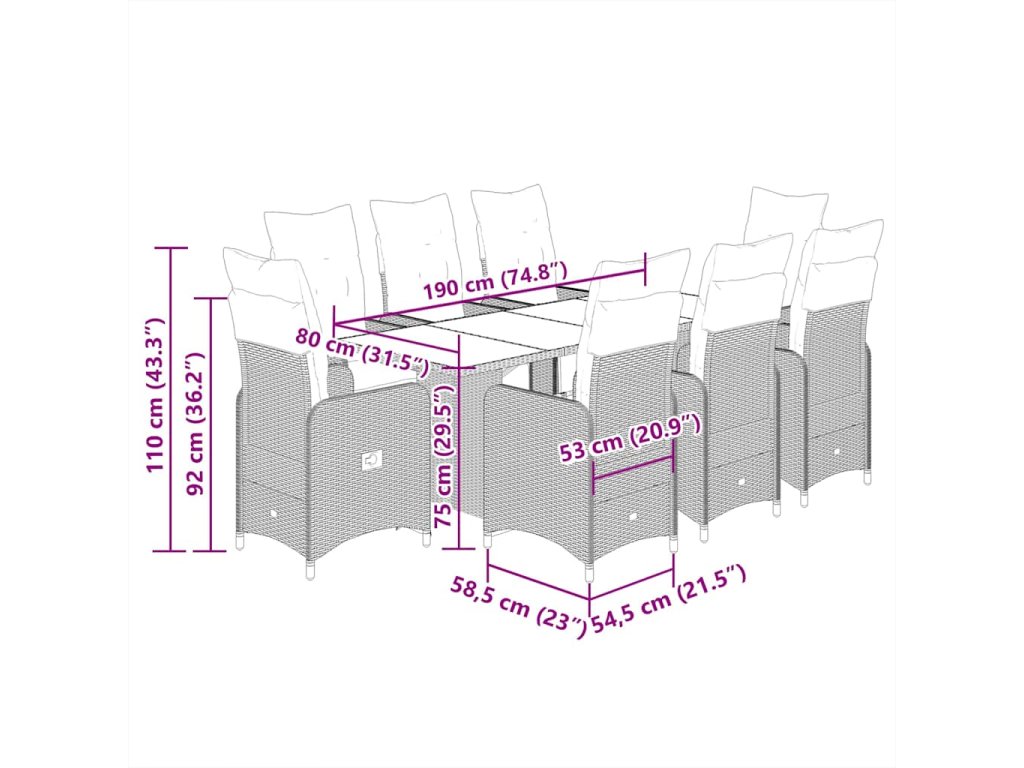 - Pohodlné sezení: Tento venkovní nábytek se silně polstrovanými poduškami a polštáři nabízí pohodlné sezení.