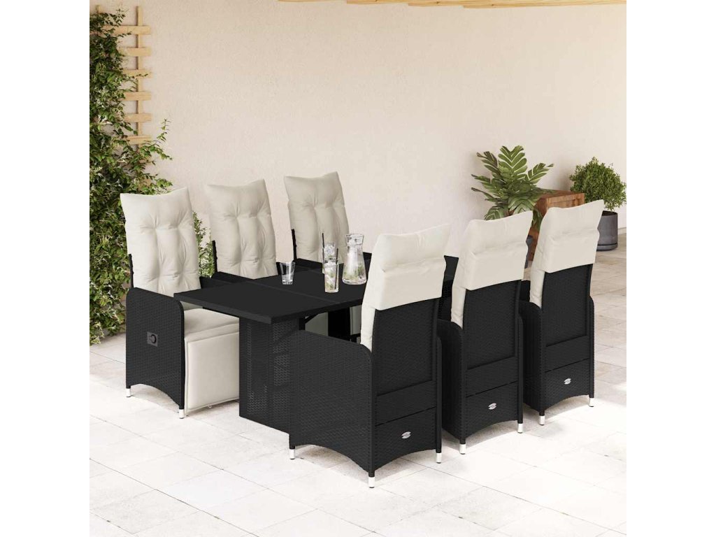 7dílný zahradní bistro set s poduškami černý polyratan 3277141