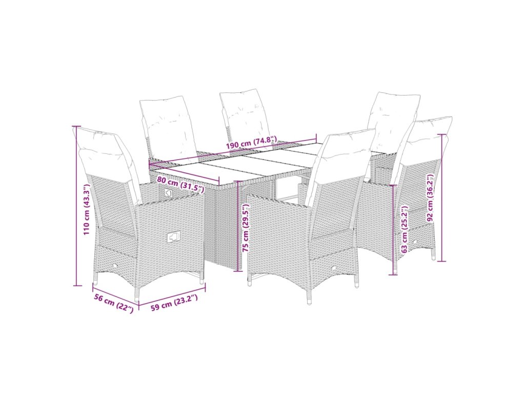 - Materiál: PE ratan, práškově lakovaná ocel, tvrzené sklo