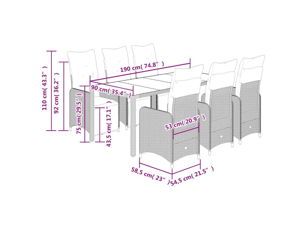 - Materiál: PE ratan, práškově lakovaná ocel, tvrzené sklo