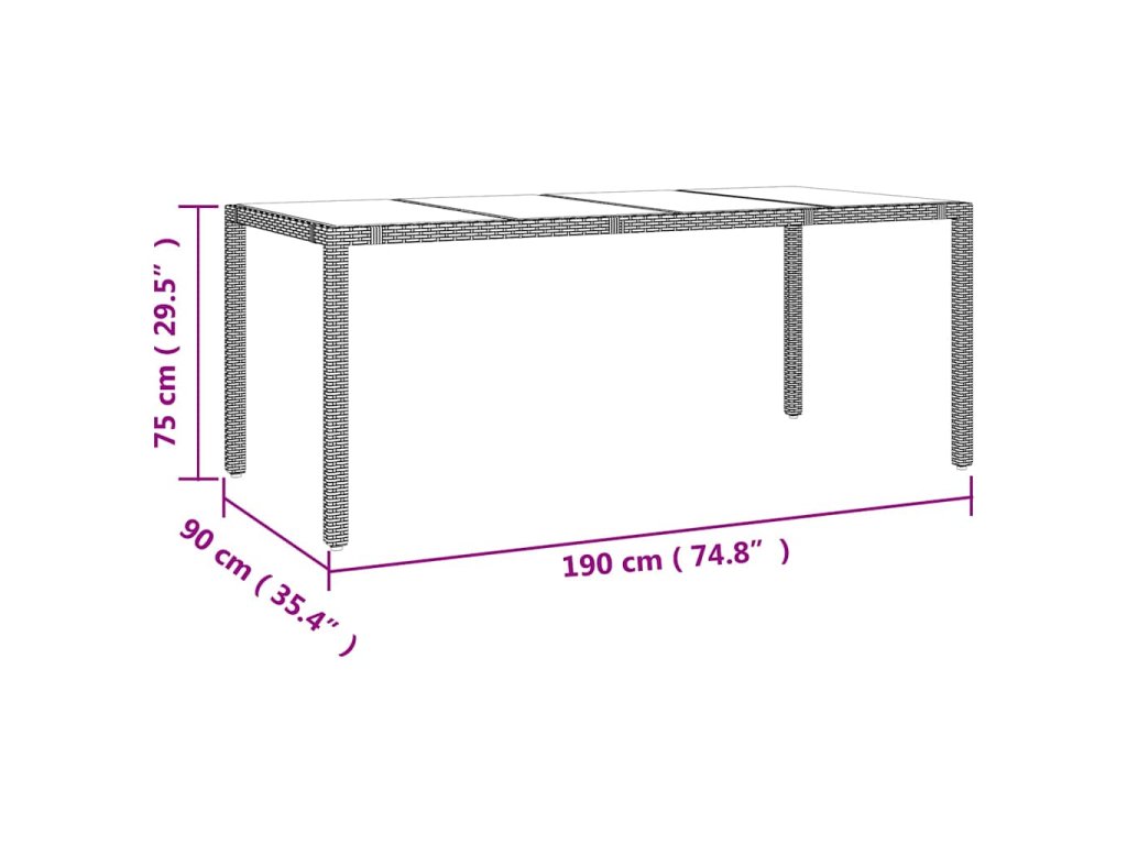 - Skleněná deska stolu: Deska venkovního stolu je zhotovena ze silného a odolného tvrzeného skla, takže ji snadno očistíte vlhkým hadříkem a zároveň do vašeho venkovního prostoru vnese nádech elegance.