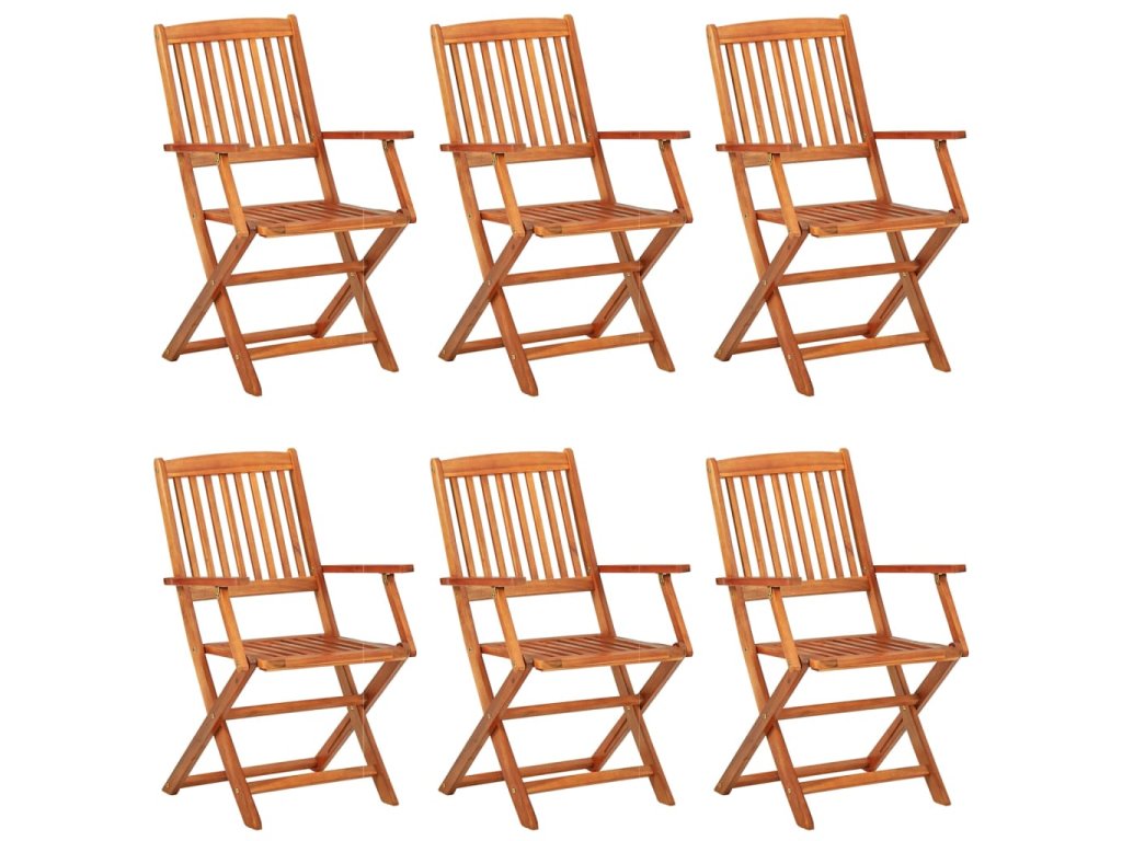 Venkovní jídelní set je vyrobený z masivní akácie, což je tropické tvrdé dřevo, které je odolné a výborně vzdoruje povětrnostním vlivům, takže vám vydrží sloužit po dlouhá léta. Olejovaný povrch se snadno čistí vlhkým hadříkem. Pokud terasové židle právě nepoužíváte, můžete je složit do kompaktní velikosti, aby vám zbytečně nepřekážely.