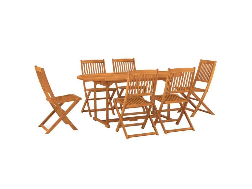 Venkovní jídelní set je vyrobený z masivní akácie, což je tropické tvrdé dřevo, které je odolné a výborně vzdoruje povětrnostním vlivům, takže vám vydrží sloužit po dlouhá léta. Olejovaný povrch se snadno čistí vlhkým hadříkem. Pokud terasové židle právě nepoužíváte, můžete je složit do kompaktní velikosti, aby vám zbytečně nepřekážely.