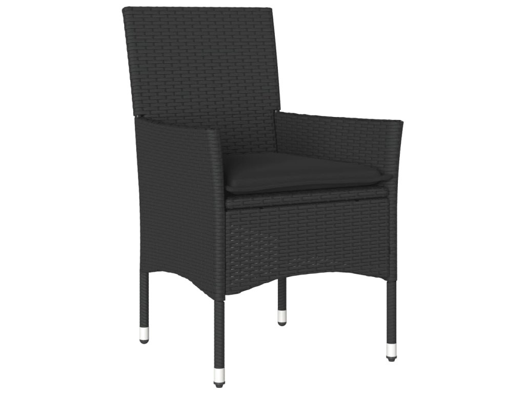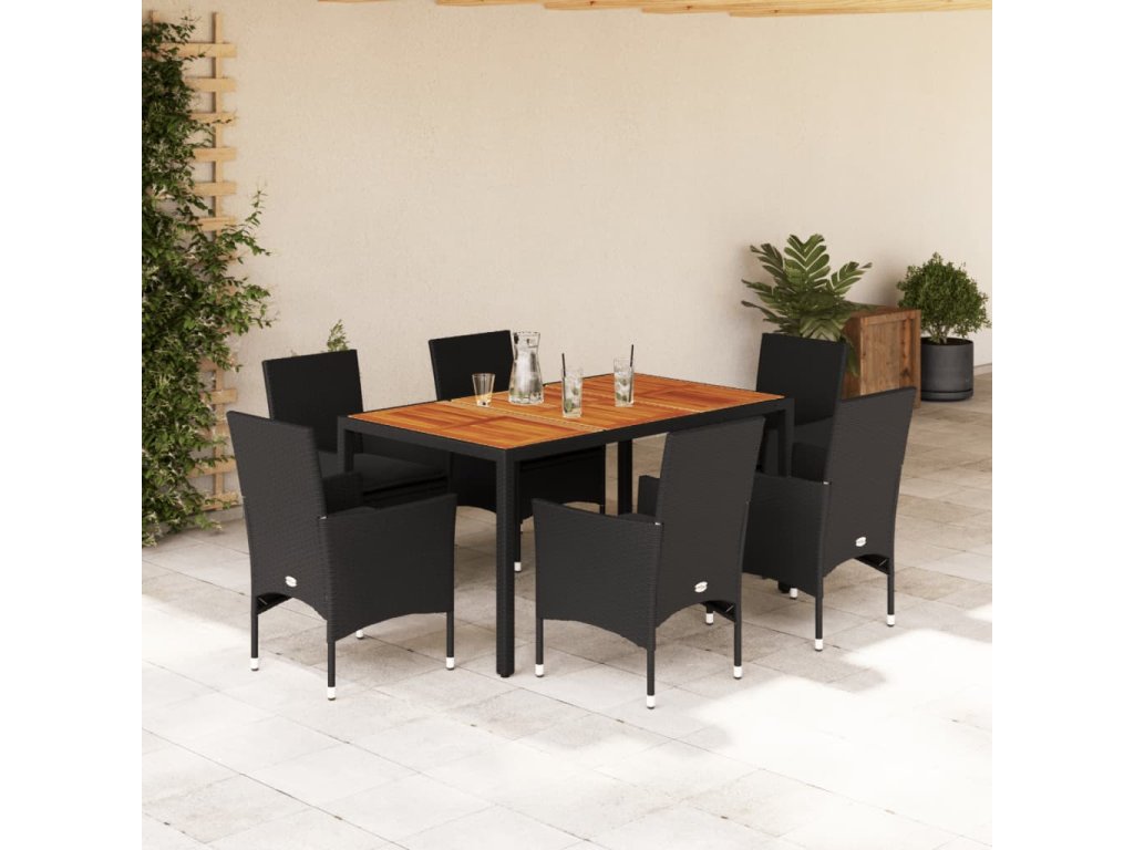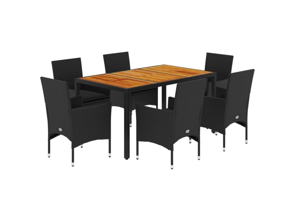 7dílný zahradní jídelní set a podušky černý polyratan a akácie 3278672