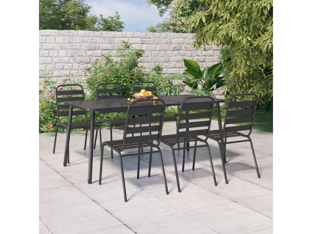 7dílný zahradní jídelní set antracitový ocel 3187993