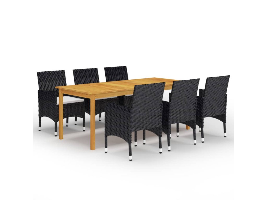 Jídelní stůl je zhotovený z masivního akáciového dřeva s olejovaným povrchem, takže je stabilní, odolný a nenáročný na údržbu. Jídelní židle mají rám z práškově lakované oceli, opletený klimaticky odolným PE ratanem, jsou tudíž odolné a snadno se čistí. Zahradní židle mají zaoblená opěradla a područky, což přispívá k většímu pohodlí, stejně jako jejich ergonomický tvar. Každé křeslo je opatřené odnímatelnou, hustě polstrovanou poduškou, která vám při odpočinku zaručí mimořádný komfort.