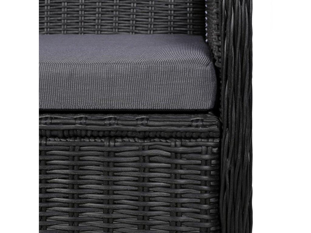 - Materiál: PE (polyethylenový) ratan, práškově lakovaná ocel