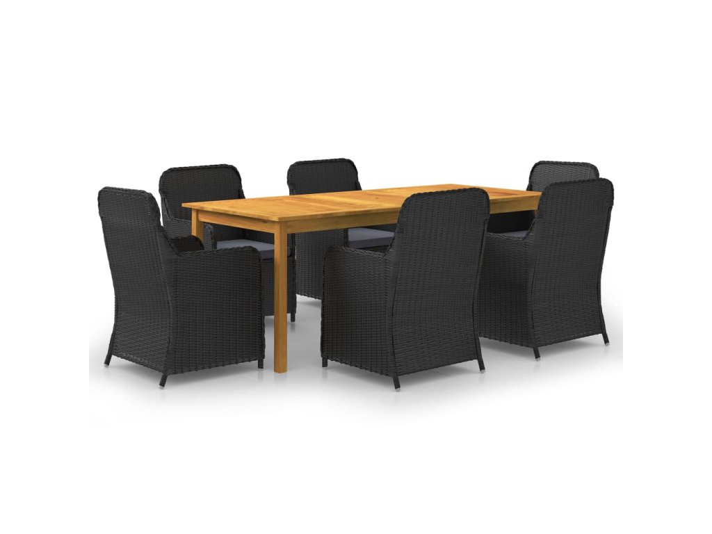 7dílný zahradní jídelní set černý 3067910