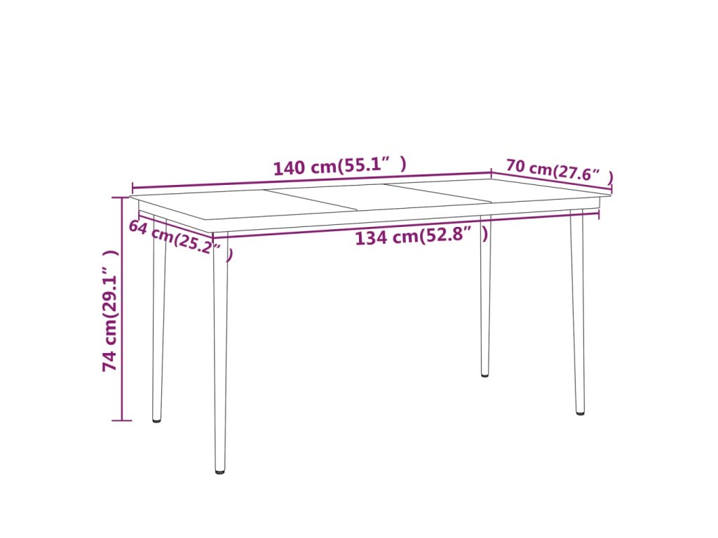 - Rozměry: 140 x 70 x 74 cm (D x Š x V)
