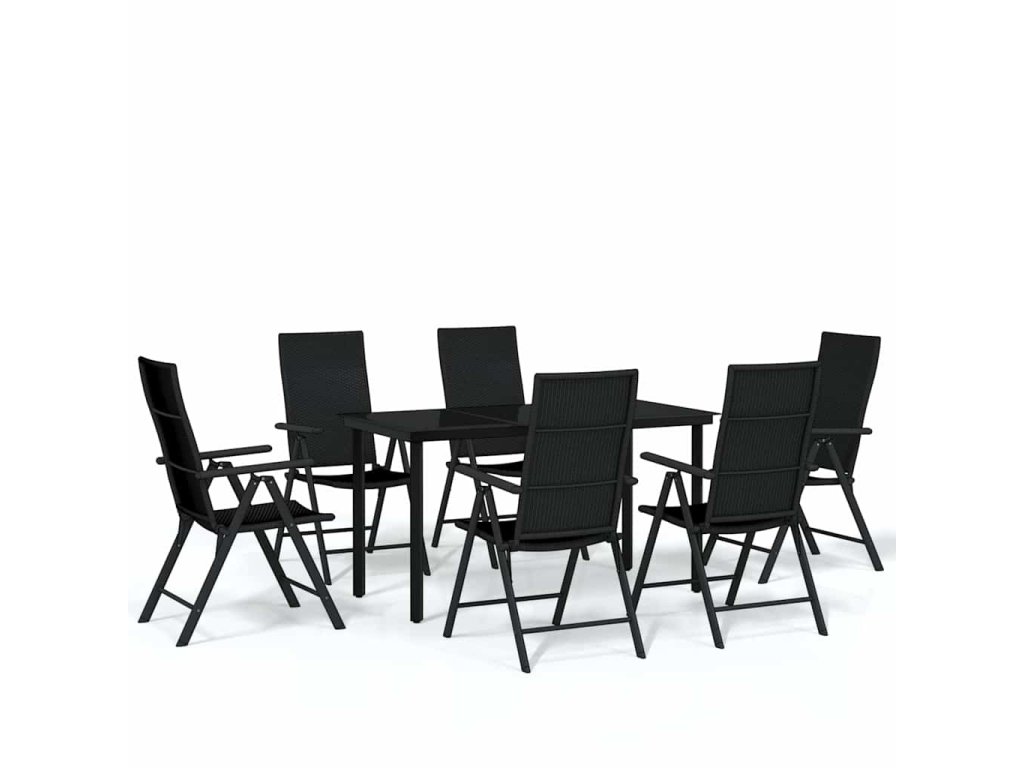 Tento zahradní jídelní stůl je vyrobený z ocelového rámu s práškovým povlakem, takže je robustní a stabilní pro každodenní venkovní použití. Hladká skleněná stolní deska se snadno čistí vlhkým hadříkem. Navíc se skvěle hodí k servírování jídla či pití a k vystavování různých dekorací. Židle na terasu jsou vyrobené z PE ratanu, takže jsou lehké a voděodolné. Opěradla židlí lze navíc sklopit do 7 různých poloh, takže snadno najdete polohu, ve které se vám bude sedět nejpohodlněji. Pokud židle právě nepoužíváte, můžete je složit, aby vám zbytečně nepřekážely.