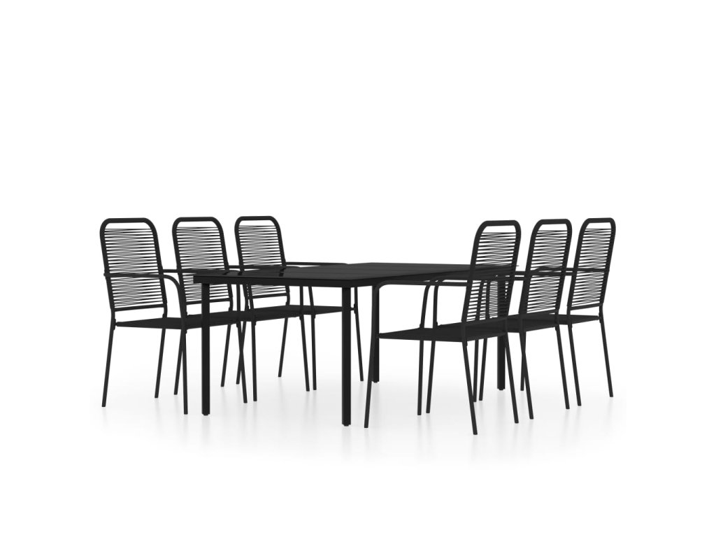 Tato zahradní jídelní souprava má ocelový rám s práškovým nástřikem, což dodává stolu a židlím na stabilitě a odolnosti. Opěradlo a sedák jsou vyrobeny ze spleteného bavlněného lanka, které je měkké na dotek a pevné pro dlouhodobé používání. Stůl má desku z tvrzeného skla, která se snadno čistí vlhkým hadříkem a je ideální pro servírování jídel a nápojů či vystavení různých dekorativních předmětů.