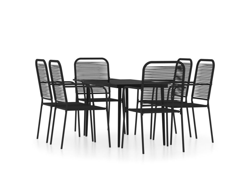 Tato zahradní jídelní souprava má ocelový rám s práškovým nástřikem, což dodává stolu a židlím na stabilitě a odolnosti. Opěradlo a sedák jsou vyrobeny ze spleteného bavlněného lanka, které je měkké na dotek a pevné pro dlouhodobé používání. Stůl má desku z tvrzeného skla, která se snadno čistí vlhkým hadříkem a je ideální pro servírování jídel a nápojů či vystavení různých dekorativních předmětů.