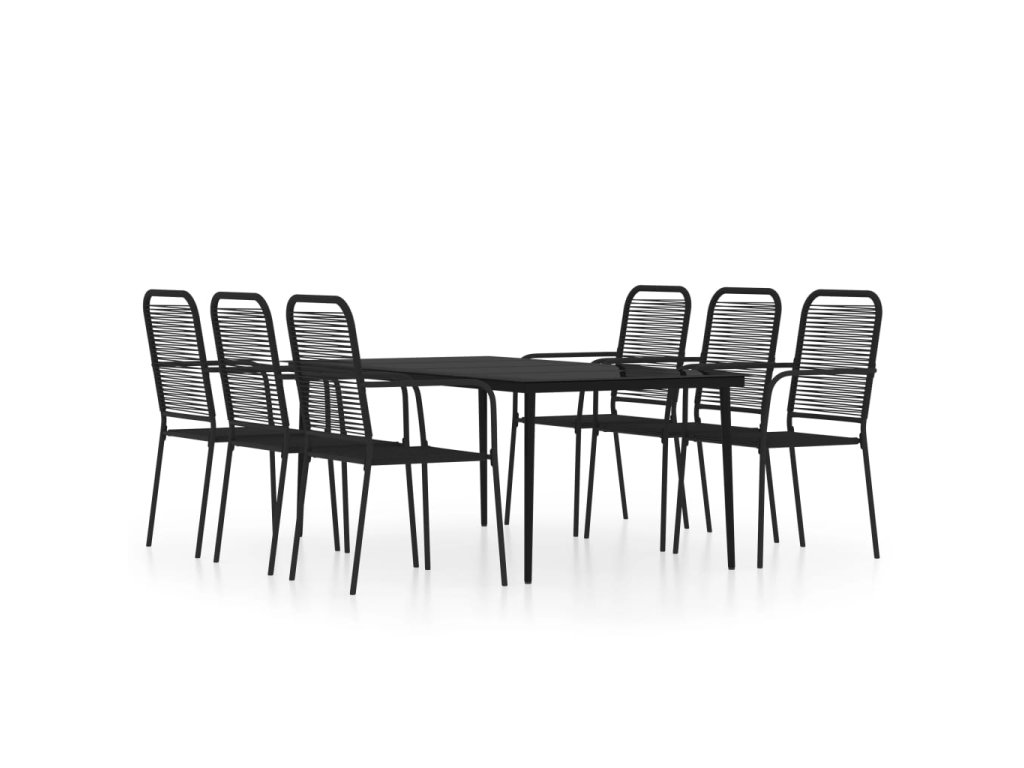 Tato zahradní jídelní souprava má ocelový rám s práškovým nástřikem, což dodává stolu a židlím na stabilitě a odolnosti. Opěradlo a sedák jsou vyrobeny ze spleteného bavlněného lanka, které je měkké na dotek a pevné pro dlouhodobé používání. Stůl má desku z tvrzeného skla, která se snadno čistí vlhkým hadříkem a je ideální pro servírování jídel a nápojů či vystavení různých dekorativních předmětů.