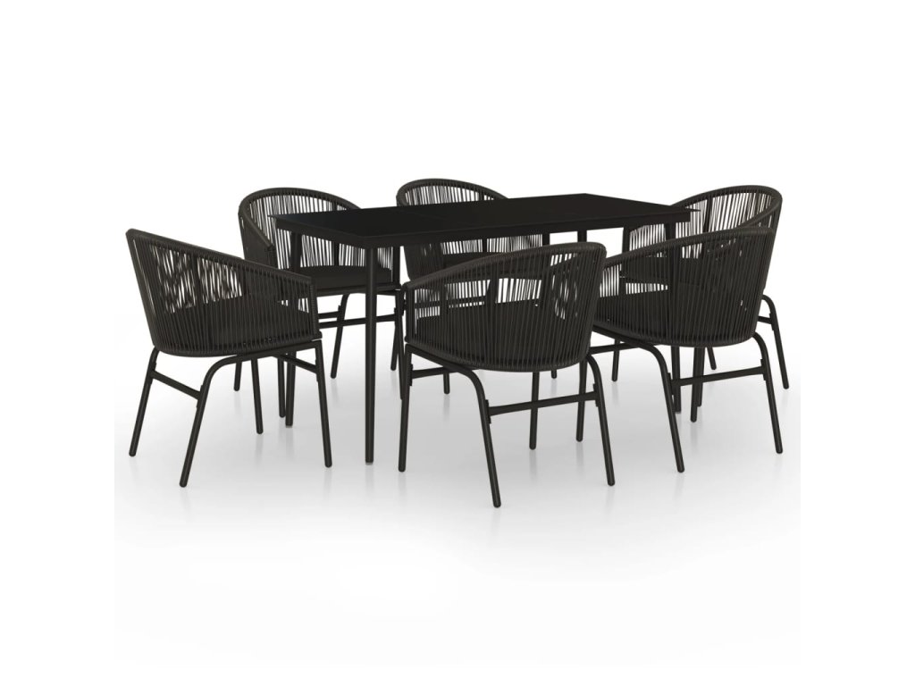 Zahradní jídelní set má práškově lakovaný ocelový rám, takže je robustní a stabilní a ideální pro venkovní použití. Hladká skleněná deska stolu se snadno čistí vlhkým hadříkem a skvěle vám poslouží k podávání jídla a pití nebo k vystavení různých dekorativních předmětů. Židle jsou vyrobené z PVC ratanu, jsou proto odolné a výborně vzdorují UV záření i špatnému počasí. Každá z nich je navíc opatřená odnímatelnou hustě polstrovanou poduškou, a zpříjemní vám tak váš odpočinek.