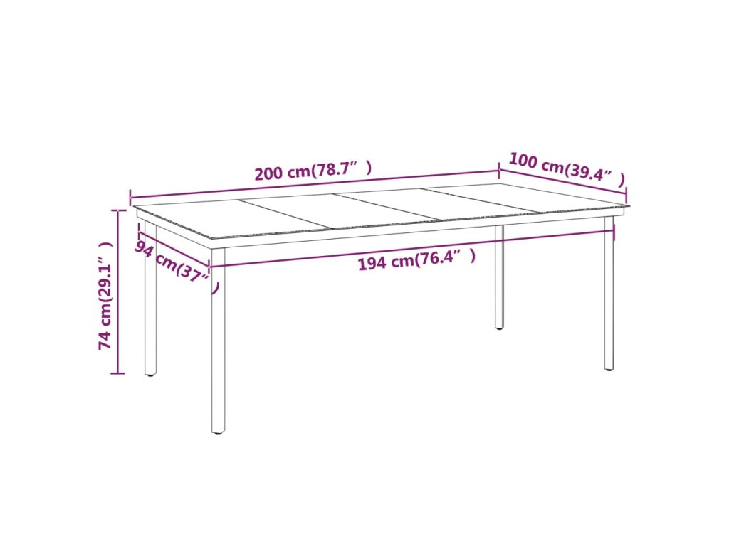 - Rozměry: 200 x 100 x 74 cm (D x Š x V)