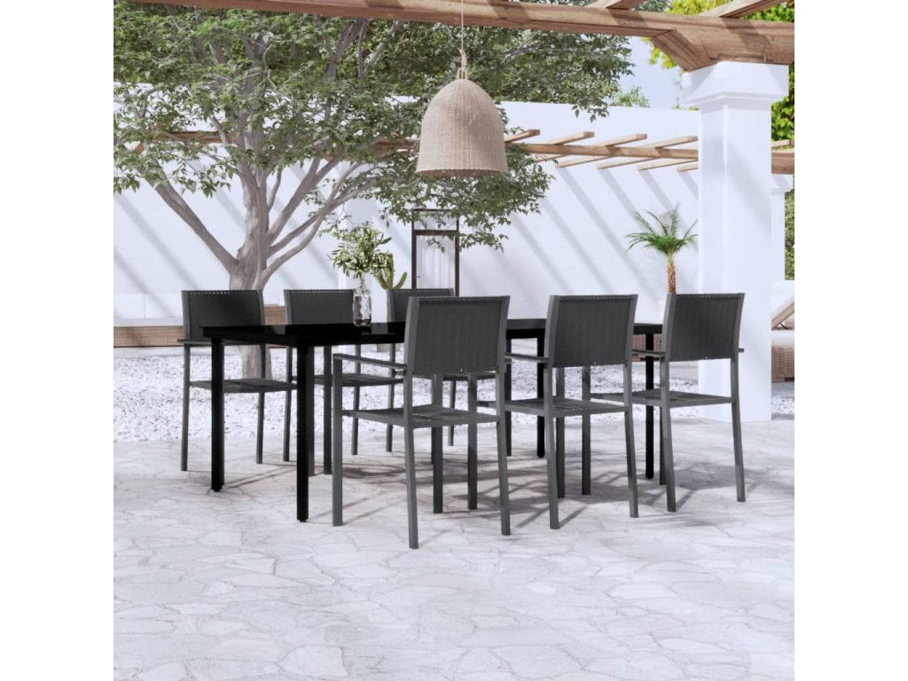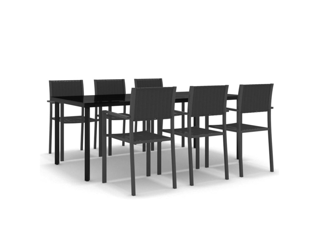 Jídelní set na terasu má práškově lakovaný ocelový rám, takže je robustní a stabilní a ideální pro venkovní použití. Hladká skleněná deska stolu se snadno čistí vlhkým hadříkem a skvěle vám poslouží k podávání jídla a pití nebo k vystavení různých dekorativních předmětů. Lehké jídelní židle jsou vyrobené z plastu, lze je proto bez problémů udržovat v čistotě a přesouvat je. Svým provedením navíc připomínají ratan, a tak vnesou do vašeho venkovního bydlení nádech přírodního kouzla!