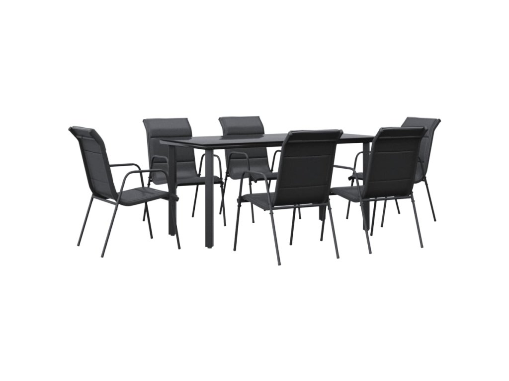 7dílný zahradní jídelní set černý ocel a textilen 3200715