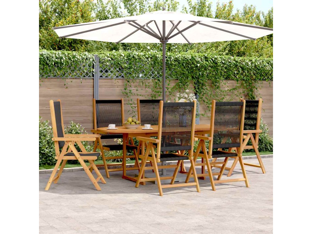 7dílný zahradní jídelní set černý polypropylen a masivní dřevo 3281721