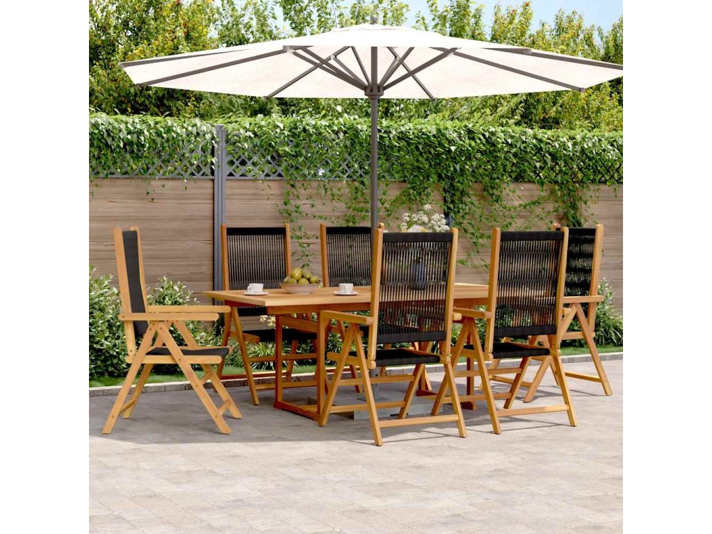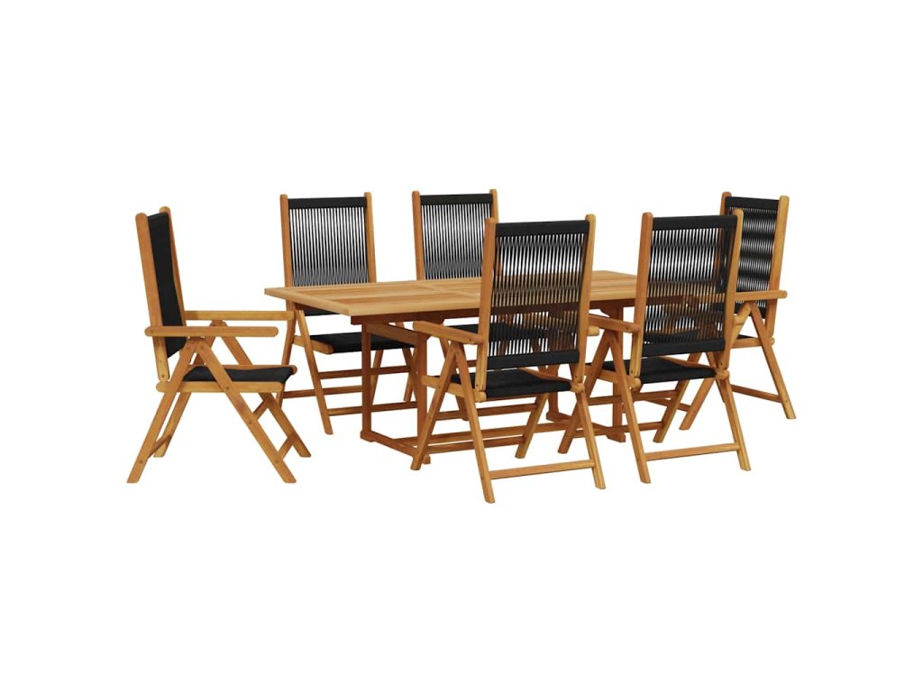 7dílný zahradní jídelní set černý polypropylen a masivní dřevo 3281733
