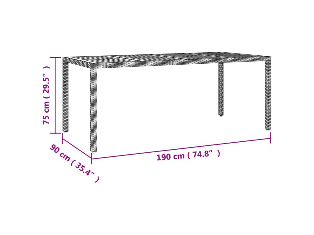 - Rozměry: 190 x 90 x 75 cm (Š x H x V)