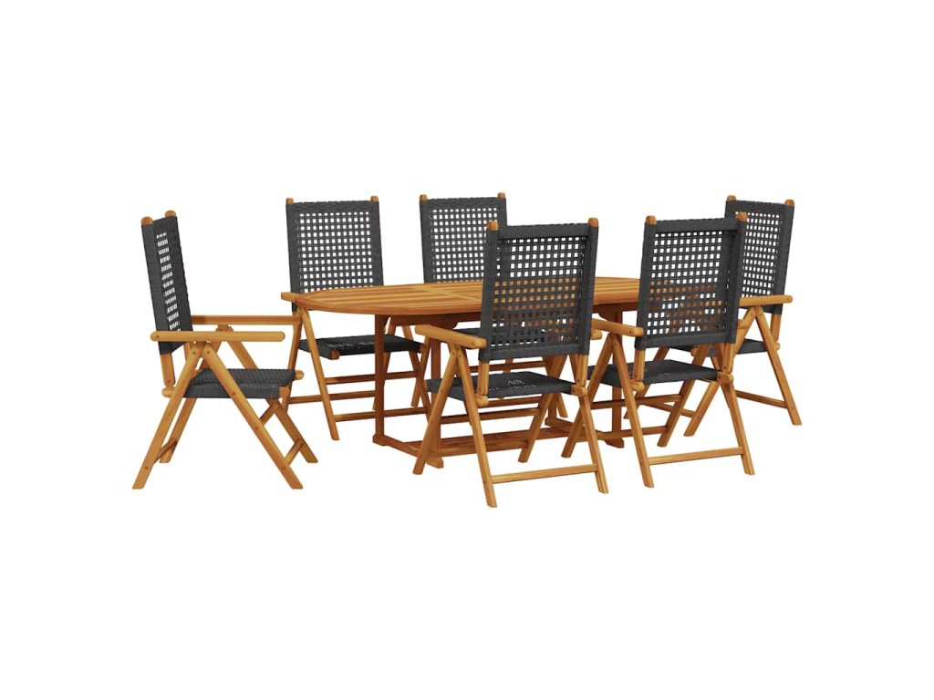 7dílný zahradní jídelní set černý polyratan a masivní dřevo 3281718