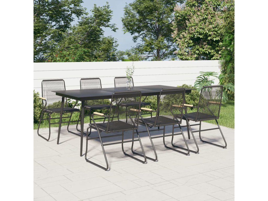 7dílný zahradní jídelní set černý PVC ratan 3060271